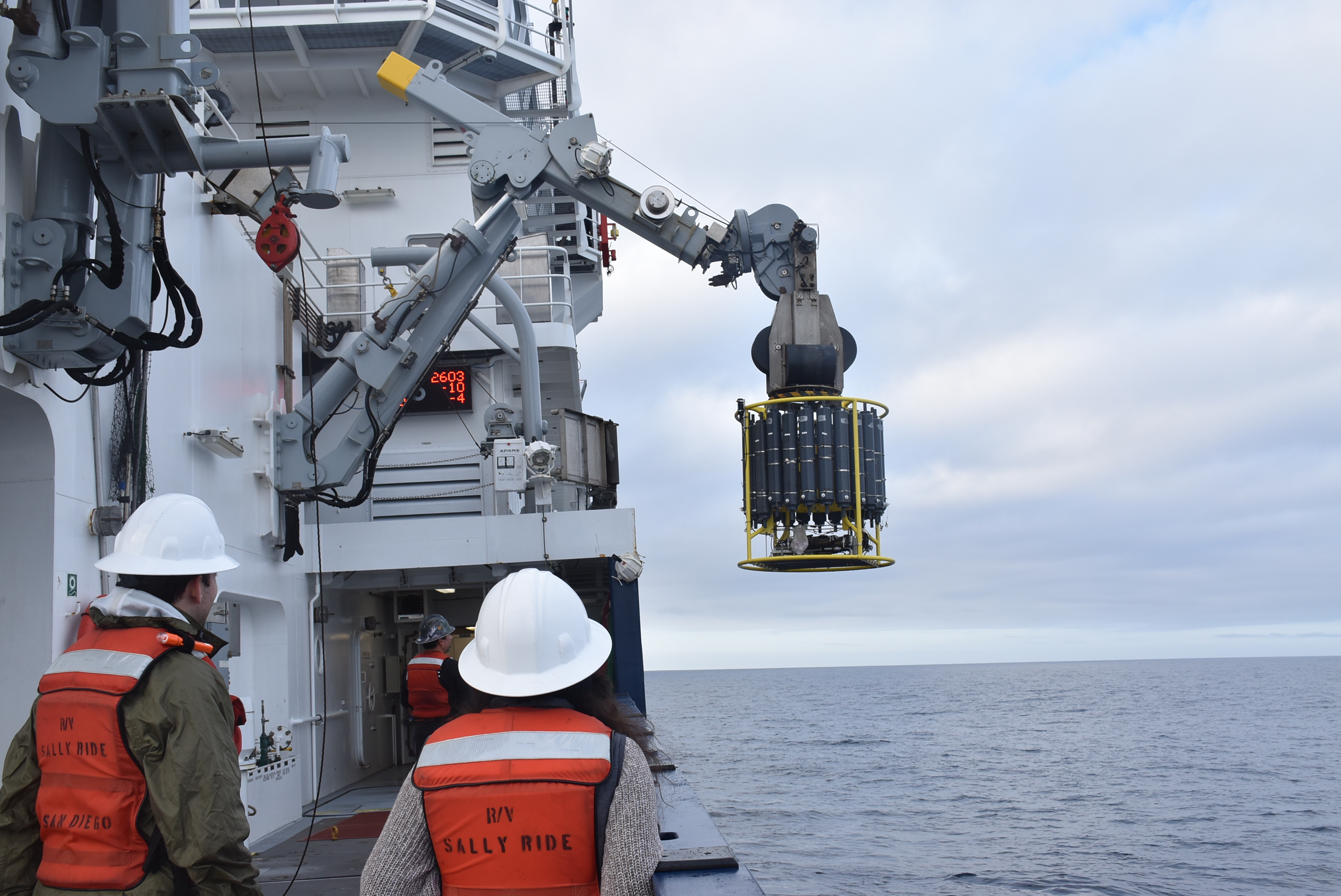 Students conducted various research projects examining the past and present ocean’s productivity by looking at different chemical elements and aerosols, zooplankton and microbial diversity, and the impact of plastic on the seafloor. During the cruise, we conducted multicore deployments, CTD casts, zooplankton net tows, and aerosol sampling at six study sites spanning the California Current.